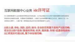 idc證辦理?xiàng)l件介紹:1、經(jīng)營(yíng)者為依法設(shè)立獨(dú)立法人公司2、全網(wǎng)idc經(jīng)營(yíng)許可證需提供至少給3個(gè)人交有一個(gè)月的社保3、跨地區(qū)經(jīng)營(yíng)的注冊(cè)資本最低認(rèn)繳限額為1000萬(wàn)元人民幣5、全網(wǎng)idc許可...